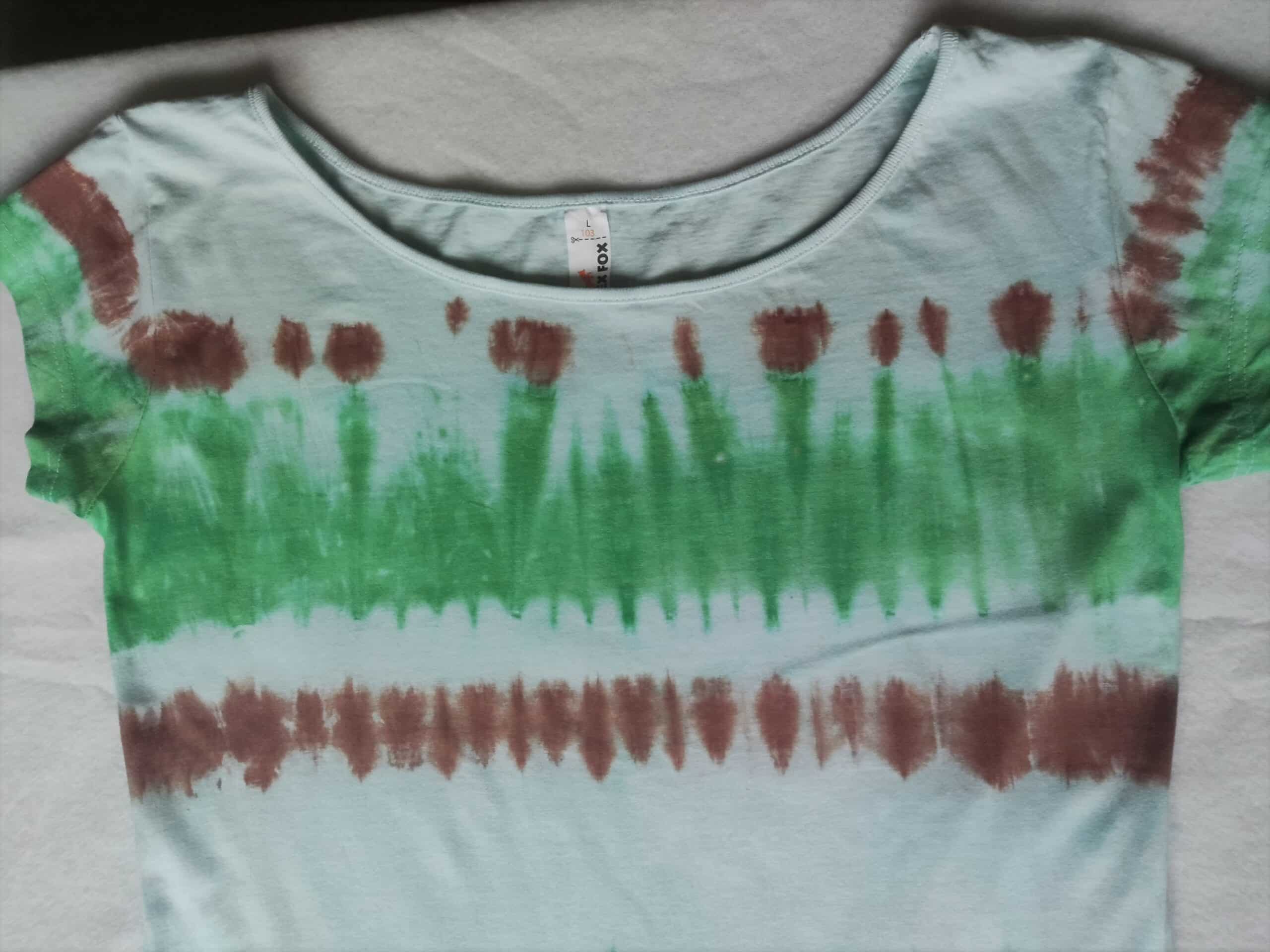 Tričko je 100% bavlnené, mierne vytvarované. Každé tričko je originál, vzor je vytvorený farbami na textil.