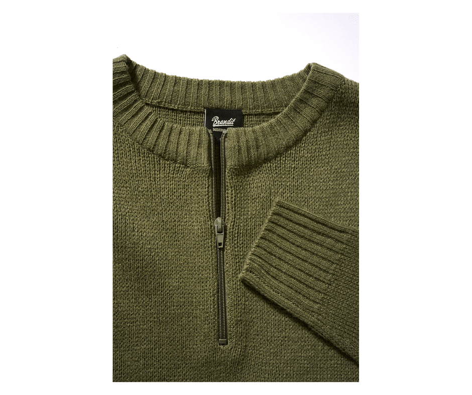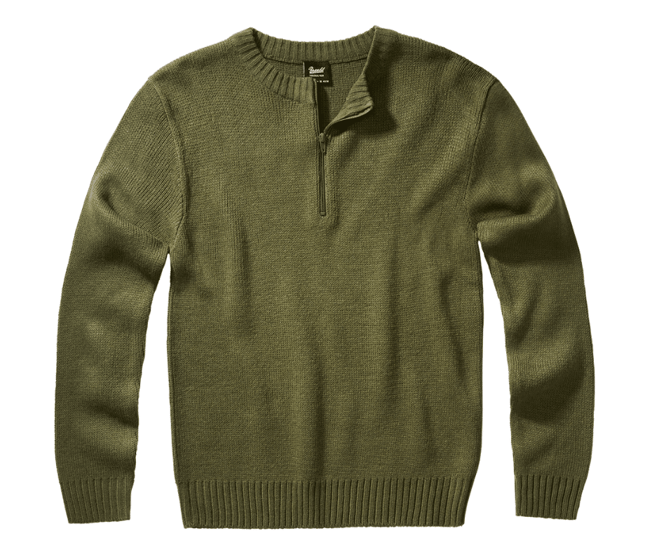 - Brandit Armee: Klasický pulóver v olivovej farbe.