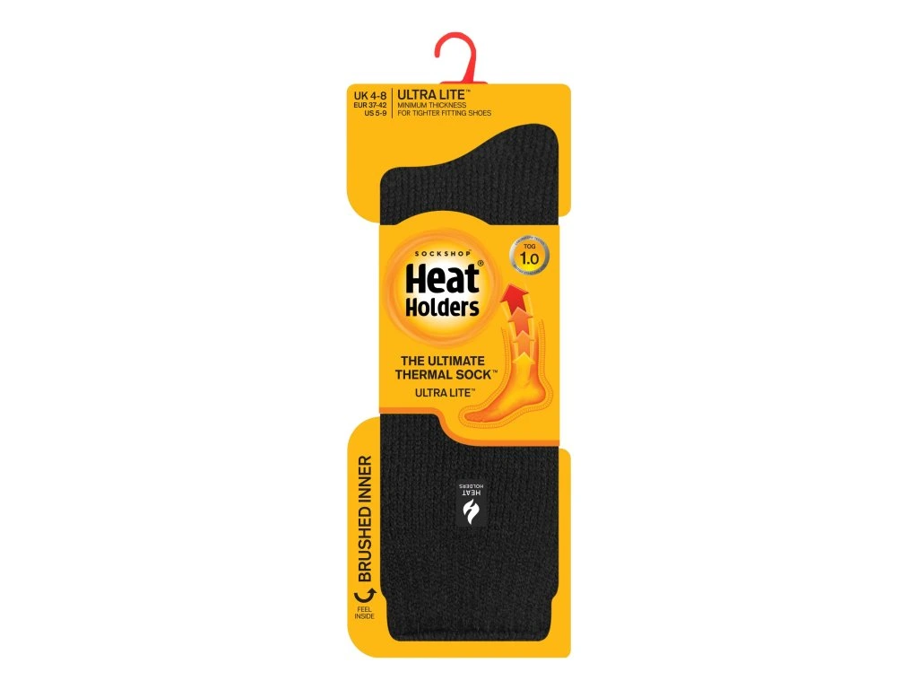 Hľadáte teplo bez zbytočnej hrúbky? Termo ponožky Heat Holders® ULTRA LITE™ v čiernej farbe navrhli tak, aby vám poskytovali tepelnú ochranu a pohodlie v ľahkom, tenšom profile. Sú ideálne na nosenie v bežnej, tesnejšej obuvi! Tieto tenké ponožky dosahujú krátku dĺžku slučky a ponúkajú hodnotenie TOG 1.04, čím preukazujú vynikajúce tepelné vlastnosti.