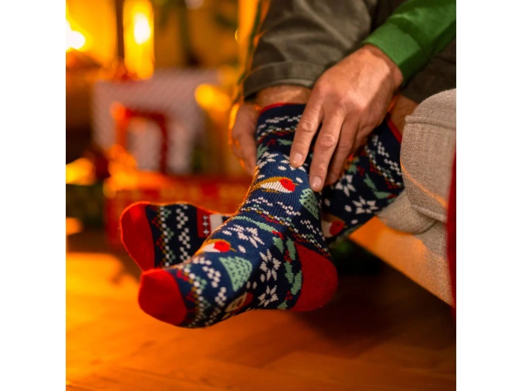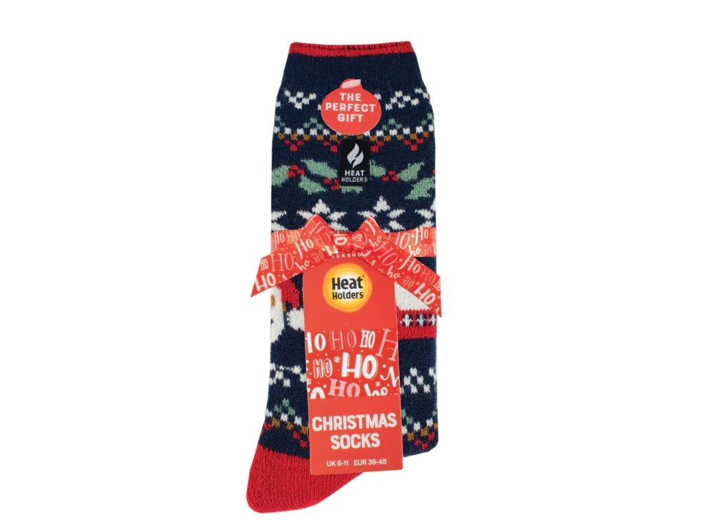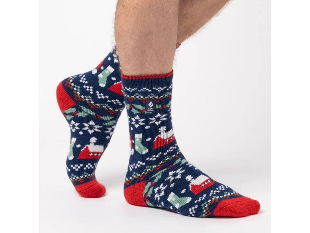 Zaobstarajte si pánske teplé froté ponožky Heat Holders 1.6 Lite s Vianočným vzorom Festive v štýle Nordic (veľkosť 39-45). Tieto ponožky sa pýšia pôsobivým hodnotením 1.6 TOG, vďaka čomu hrejú štyrikrát viac ako štandardné bavlnené ponožky. Poskytnú vám ideálnu rovnováhu medzi hrúbkou a hrejivosťou, vďaka čomu si užijete dlhotrvajúce pohodlie v bežnej obuvi počas celej zimy.