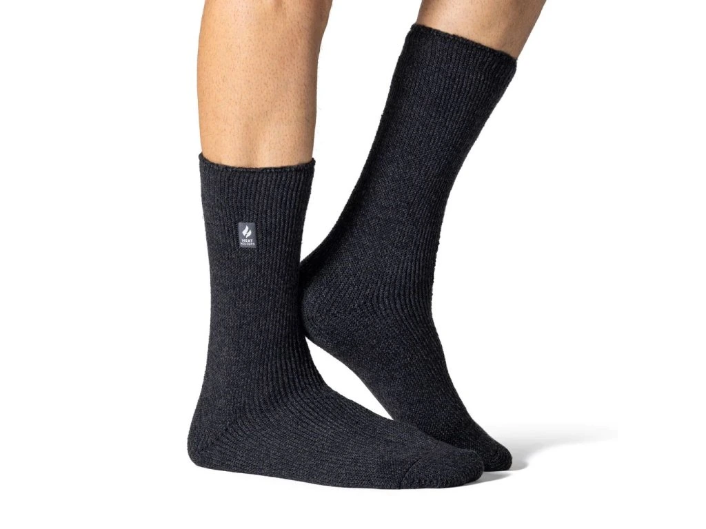 Keď teplota klesne pod nulu, ponožky Heat Holders ORIGINAL sa stávajú vašou prvou líniou obrany. Tieto hrubé pánske termo ponožky v elegantnej tmavošedej (Charcoal) farbe disponujú masívnym hodnotením TOG 2,34. To znamená, že izolujú až 7-krát lepšie než bežné bavlnené ponožky. Špeciálne vyvinutá objemová priadza dodáva materiálu extrémne tepelné vlastnosti a výnimočnú schopnosť udržať teplo.