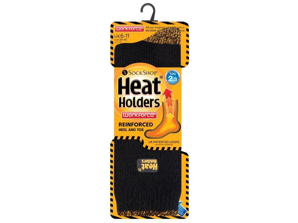 Pánske teplé zimné pracovné ponožky Heat Holders 2.3 – Hrubé termo ponožky – Workforce prinášajú robustnú konštrukciu a výborné tepelno-izolačné vlastnosti. Ponožky sa pýšia masívnym hodnotením TOG 2.34, vďaka čomu patria medzi najteplejšie dostupné ponožky. Vo verzii Workforce disponujú odolnou zosilnenou pätou a špičkou, a tak Heat Holders 2.3 – Hrubé termo ponožky – Workforce poskytujú potrebnú ochranu.