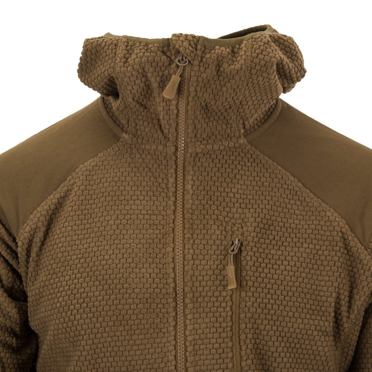 Mikina Helikon-Tex Alpha Hoodie Fleece moderná flísová bunda. Tento model, Alpha Hoodie Grid Fleece, vyniká svojou funkčnosťou. Vďaka ľahkému a hrejivému sieťovanému flísu sa dá nosiť ako samostatná vrstva, ale aj ako dodatočná izolácia pod bundou. Ideálna je na chladné dni. Jej mierne predĺžený zadný diel poskytuje dodatočnú ochranu obličiek.