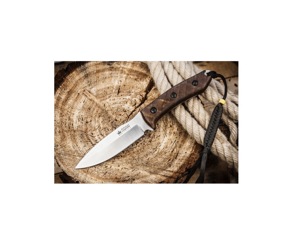 Drevená rukoväť má unikátnu kresbu, ktorá sa môže mierne líšiť od fotografie. Nôž váži iba 106 g.