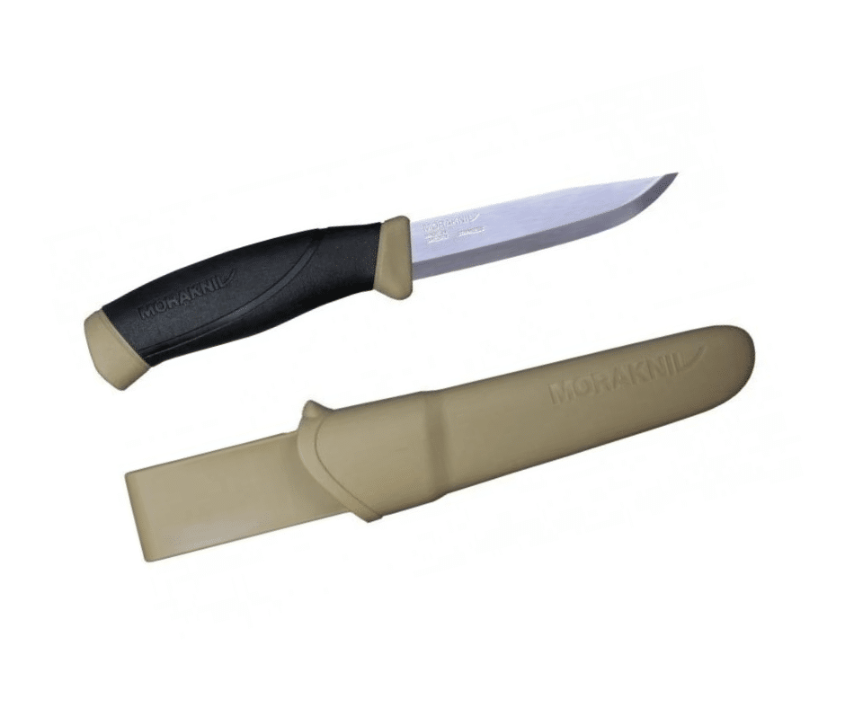 - Morakniv Companion: Spoľahlivý nôž v púštnom odtieni.