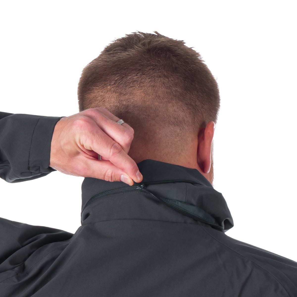 Bunda má klasický regulárny strih a v golieri ukrytá skladateľná kapucňa, ktorú môžete kedykoľvek vytiahnuť. Na rukávoch nájdete strečové manžety a nastaviteľné lemy, čo umožňuje prispôsobiť si strih podľa potreby.