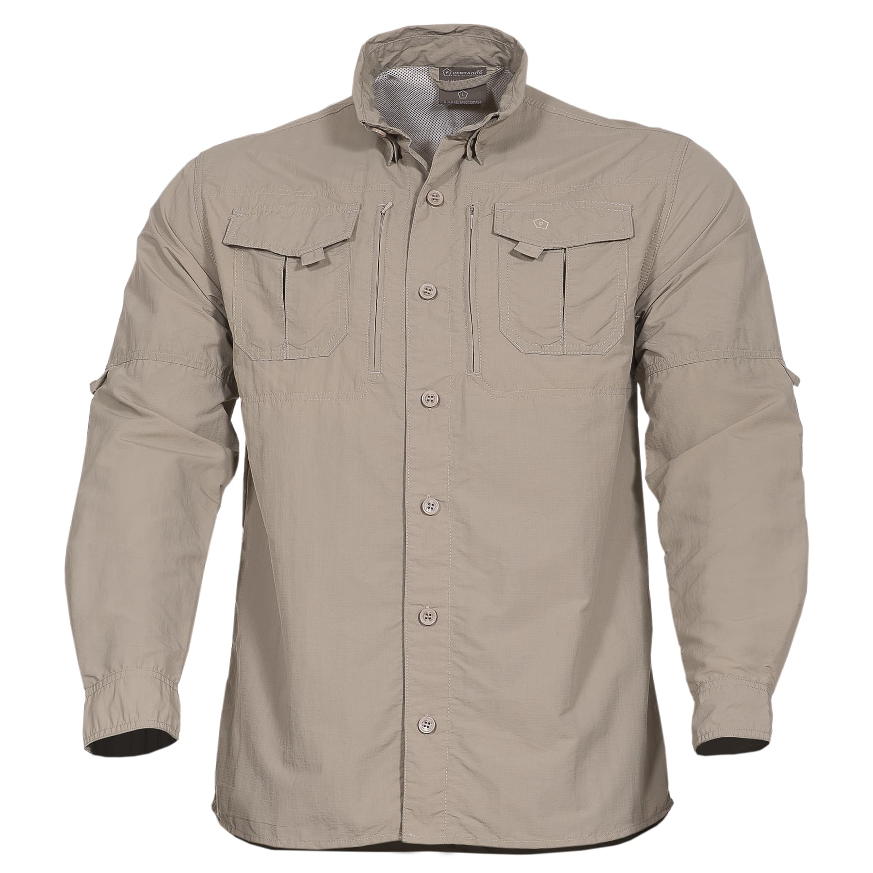 Košeľa Pentagon Kalahari v khaki farbe je ideálny kúsok na outdoorové aktivity, turistiku alebo každodenné nosenie. Z kvalitného materiálu, ktorý je priedušný, pohodlný a odolný, čo z nej robí skvelú voľbu na teplé dni v prírode.