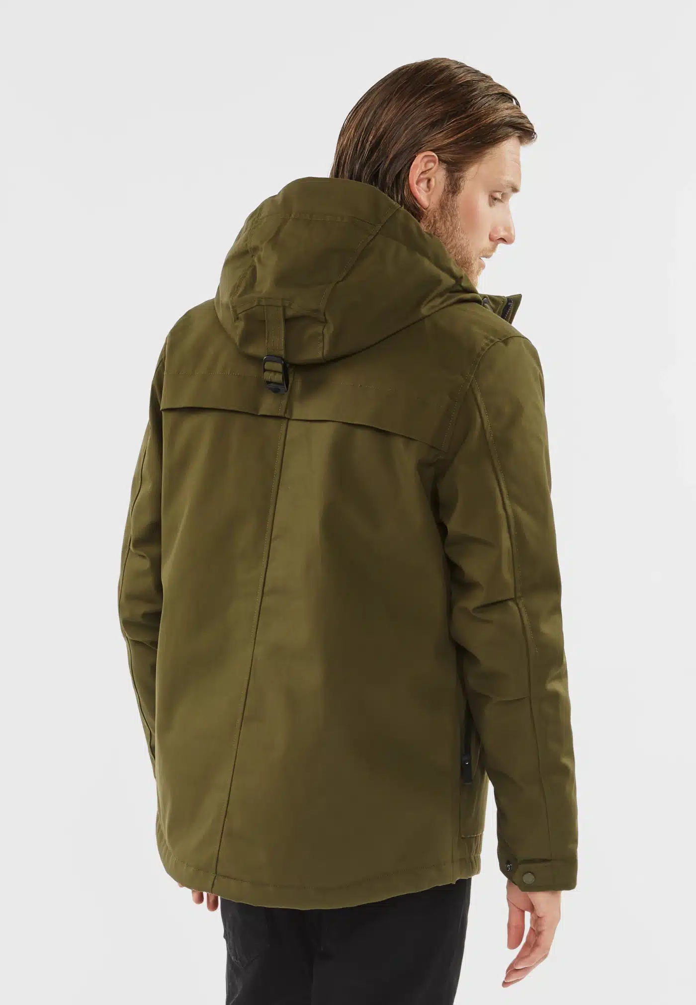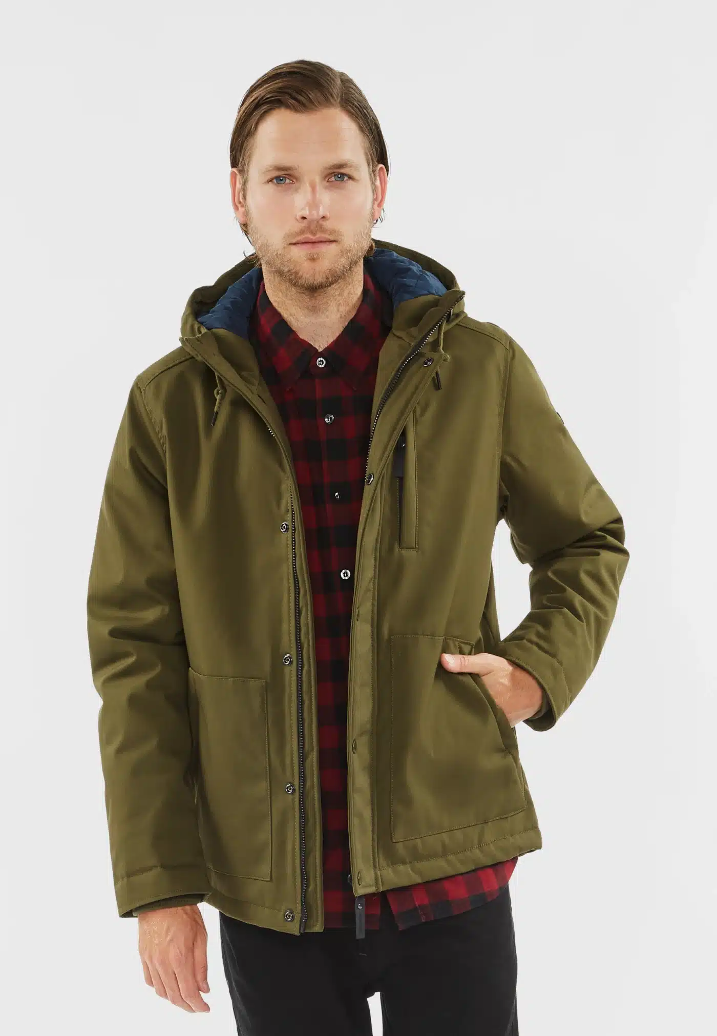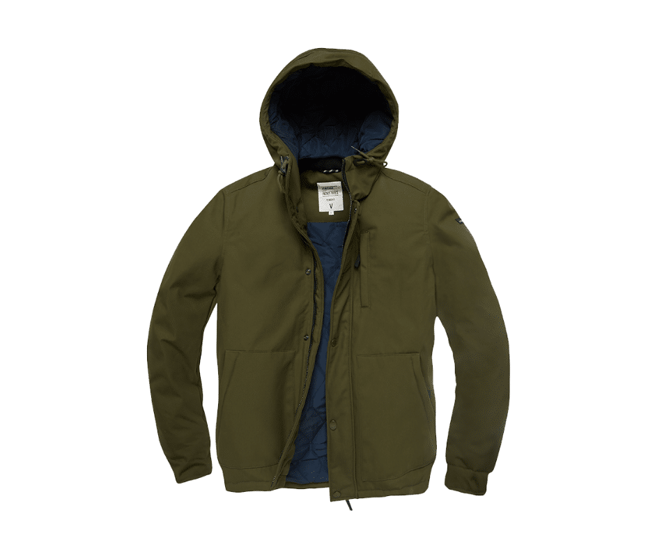 Bunda Vintage Industries Kyler štýlová a všestranná prechodná bunda. Je v klasickej olivovej farbe, ideálna na každodenné nosenie, voľný čas a outdoorové aktivity. Dizajn inšpirovaný klasickými pracovnými bundami a military štýlom.